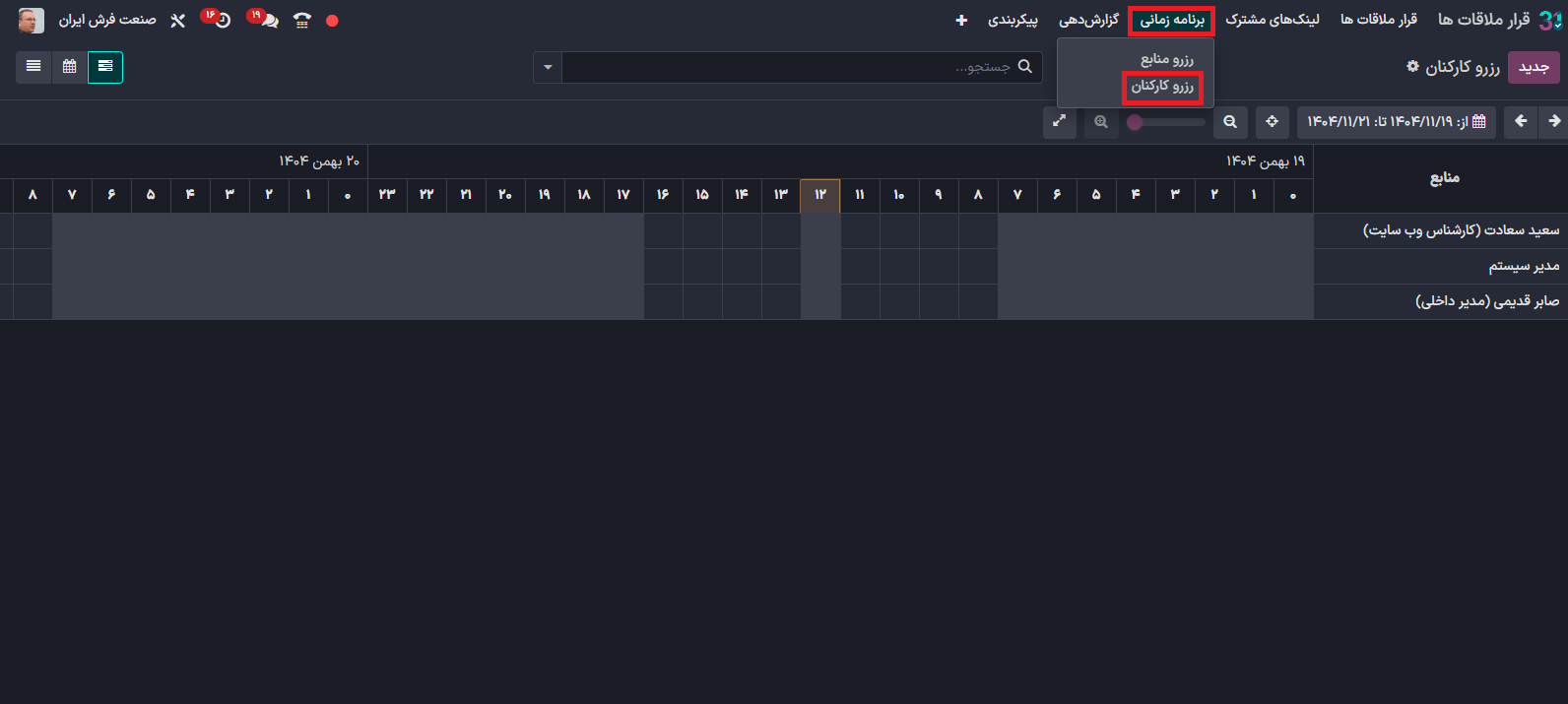- ثبت مرخصی، غیبت یا عدم دسترس بودن منابع