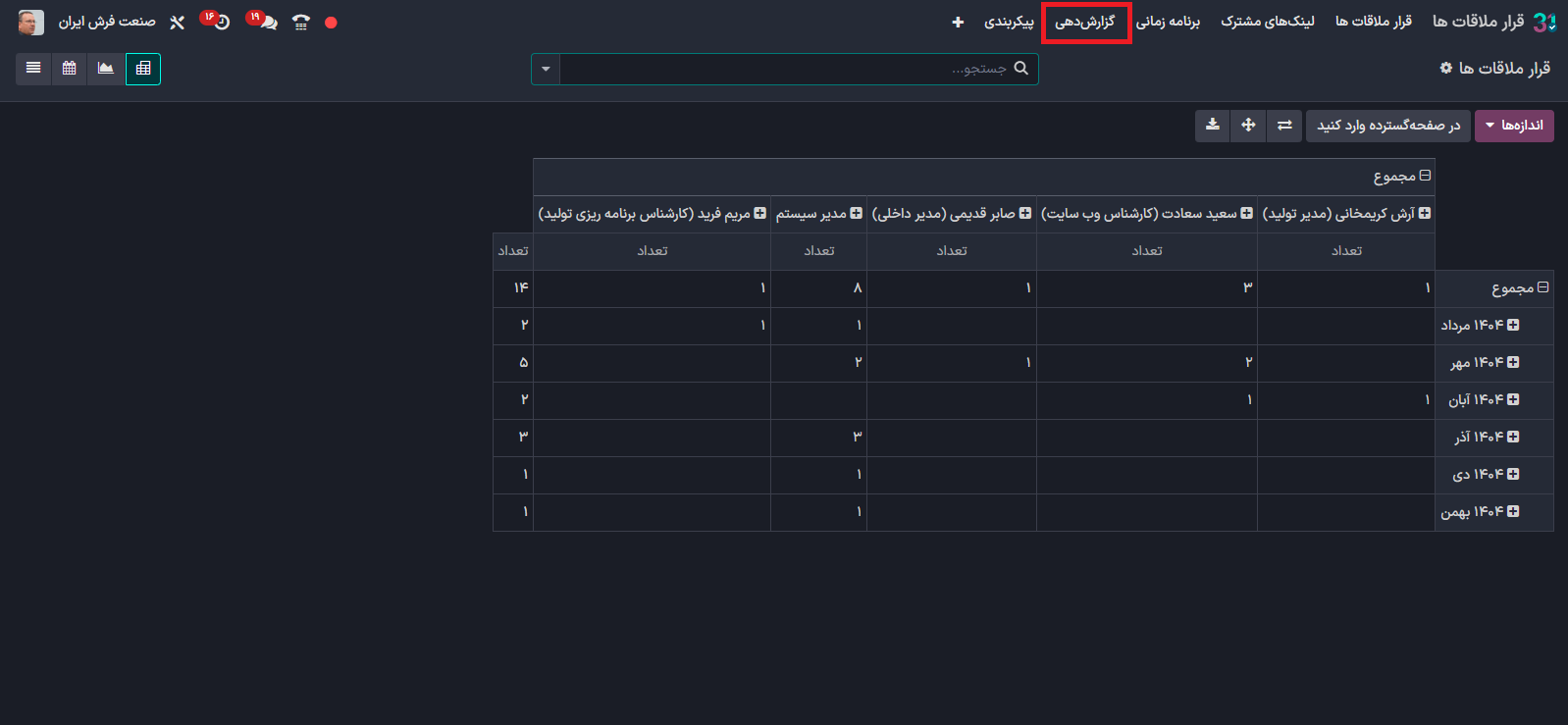 با شناخت کاربرد بخش های مختلف بالای صفحه قرار ملاقات، می توانید فرآیند مدیریت،پیگیری و برنامه ریزی قرارها را به صورت موثرتر انجام دهید.