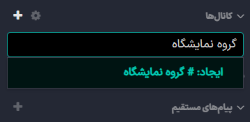 نام کانال را وارد کنید و با استفاده از گزینه مربوطه کانال را ایجاد کنید