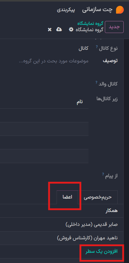 سپس با استفاده از تنظیمات کانال اعضای کانال را مشخص کنید و سایر تنظیمات را اصلاح کنید