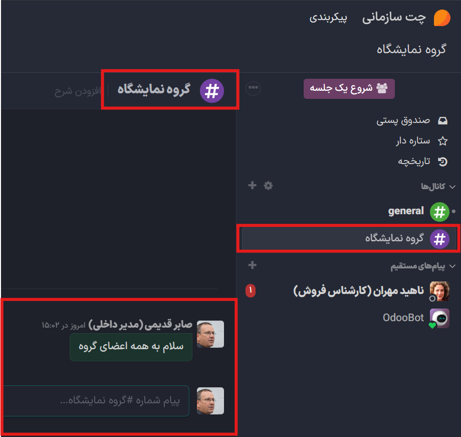 به عنوان مدیر تیم وارد ماژول چت سازمانی شوید.