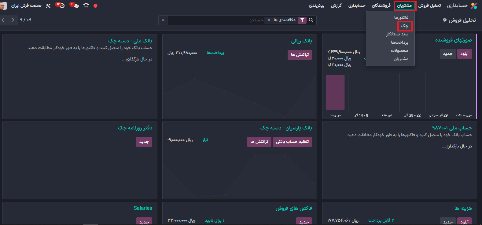 از قسمت مشتریان چک را انتخاب کنید