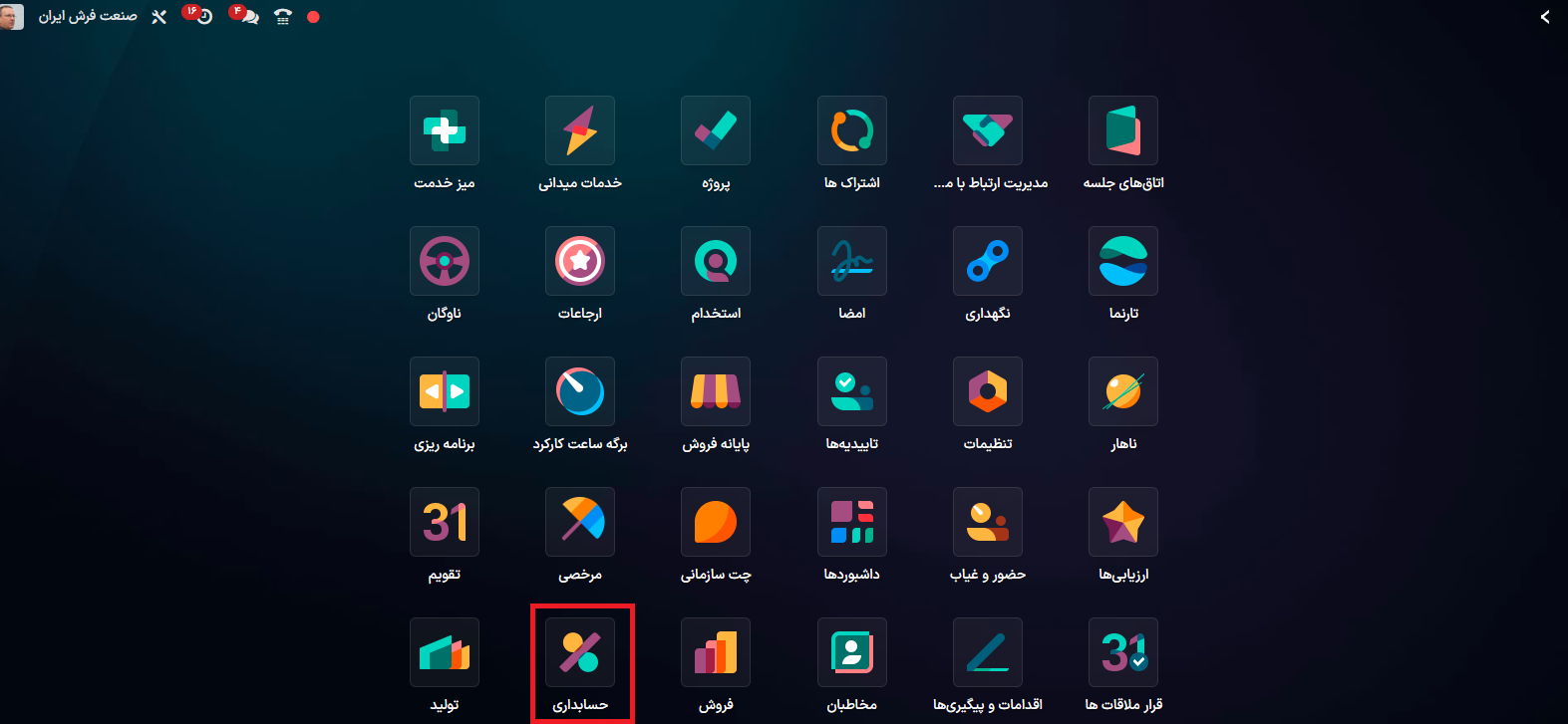 وارد ماژول حسابداری شوید.