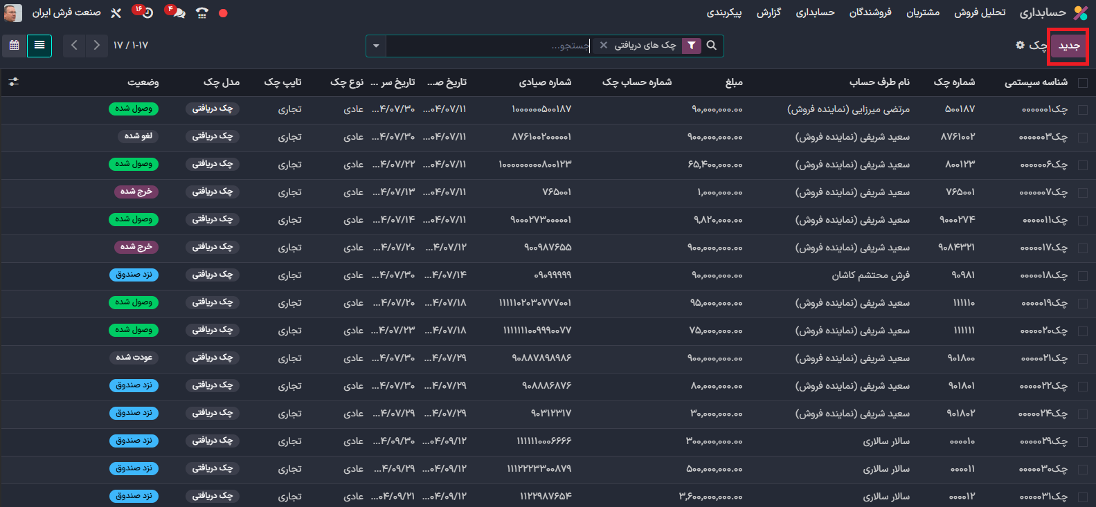 برای ایجاد چک جدید قسمت جدید را انتخاب کنید