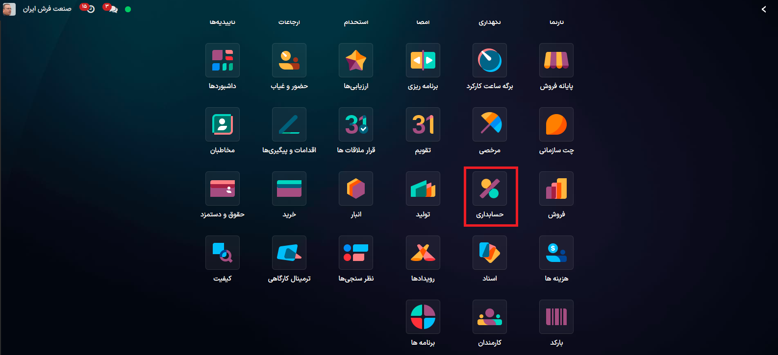 همچنین در قسمت حسابداری آیتم های روزنامه می توان تمام حساب های شخص مورد نظر را مشاهده کرد.