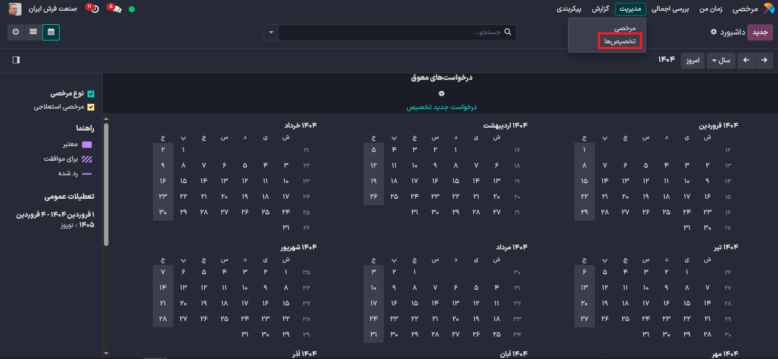 اینگونه می توان مرخصی را به یک نفر تخصیص داد.