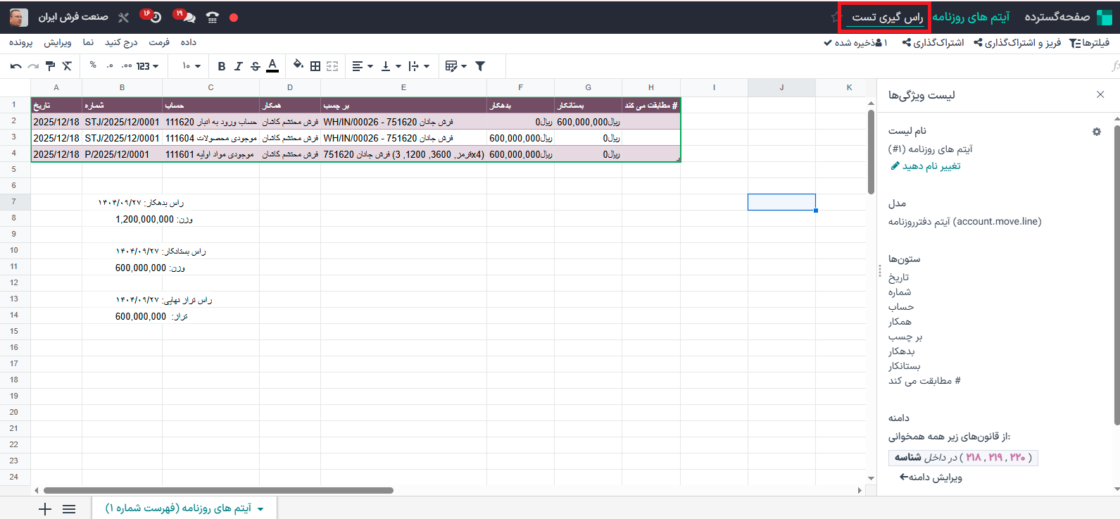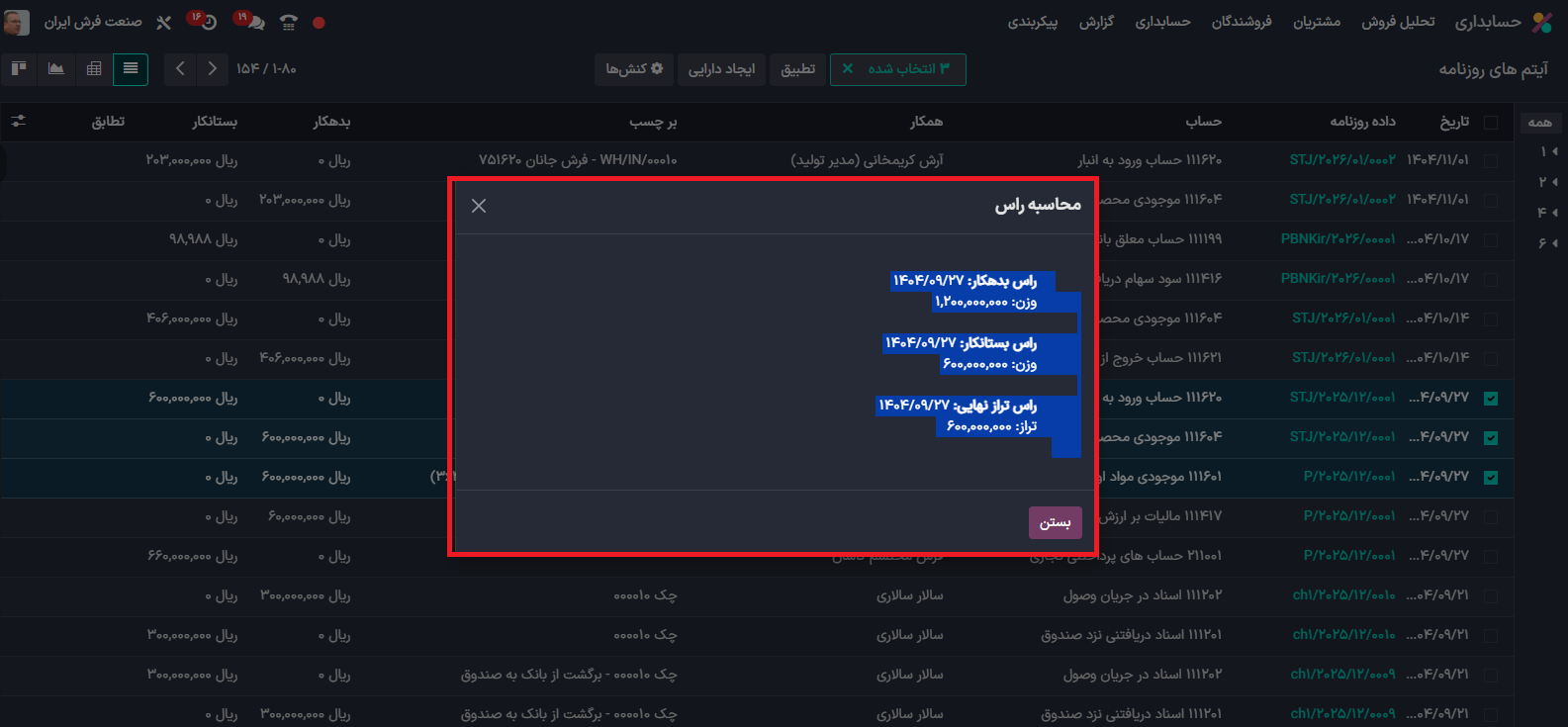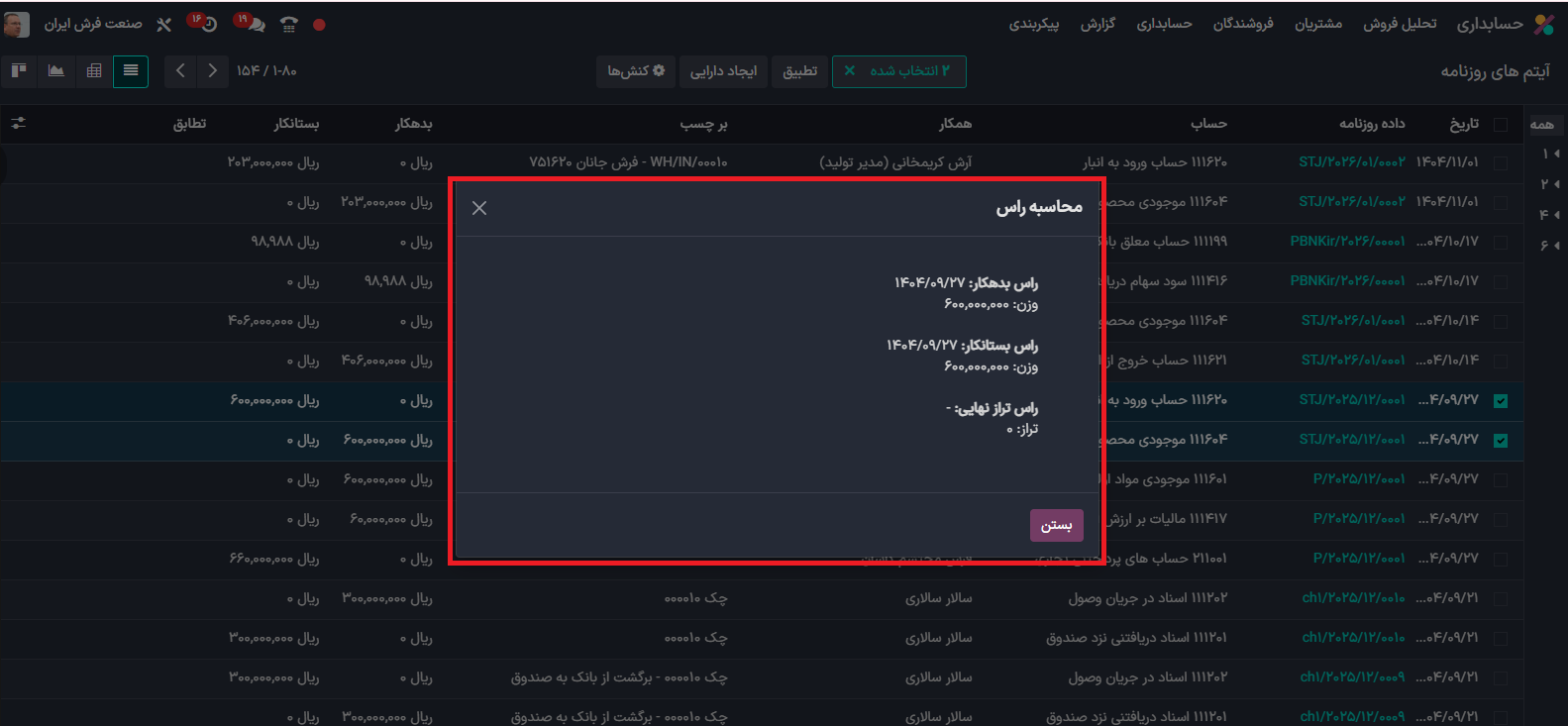 با انجام این مراحل محاسبه راس برای آیتم های روزنامه با موفقیت انجام شده است و گزارش آن نیز در ماژول اسناد برای استنادهای بعدی ذخیره گردیده است.