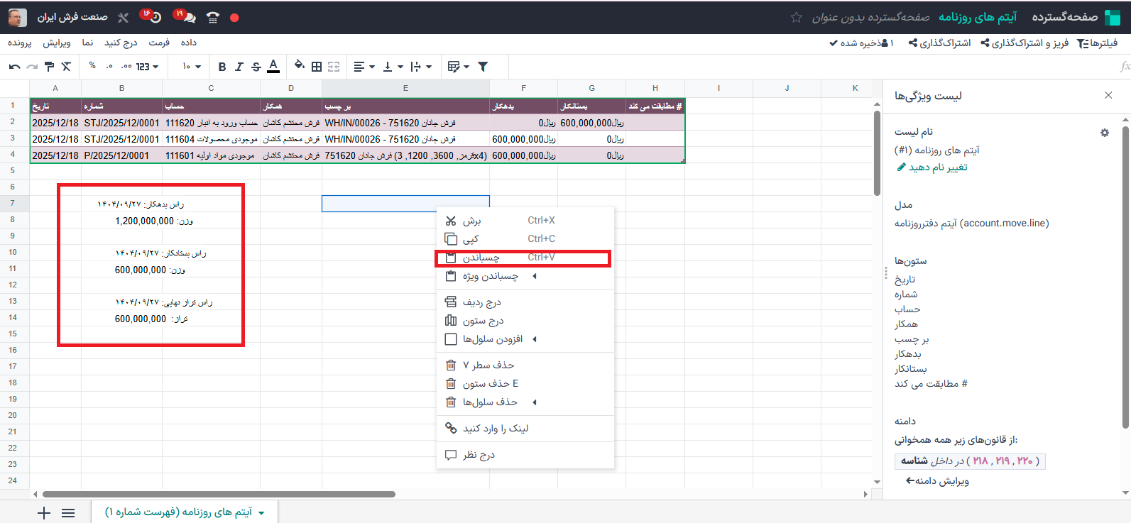 می توانید محاسبه راس را در این قسمت وارد صفحه گسترده اودو کنید و آن را ذخیره کنید.
