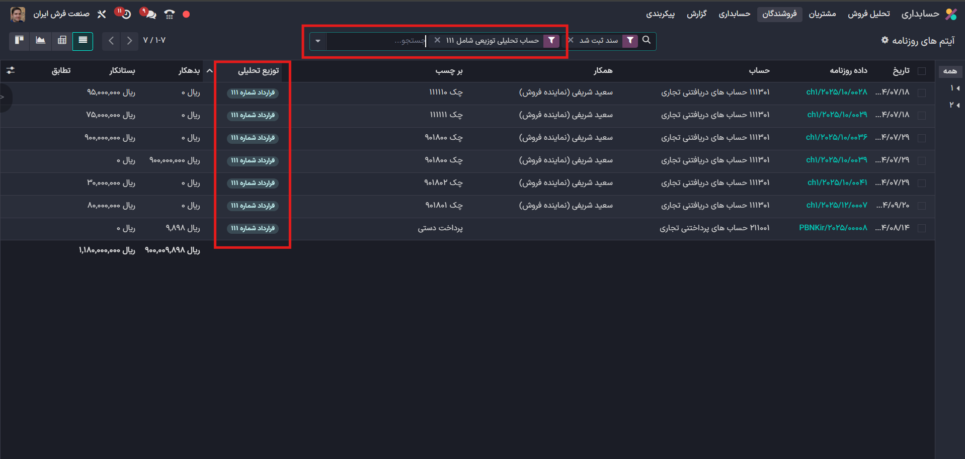 در آیتم های روزنامه این امکان را داریم که رکوردهای اسناد را به دلخواه مرتب و فیلتر کنیم . بر اساس یک تفصیلی ، تاریخ ، حساب معین و ....
