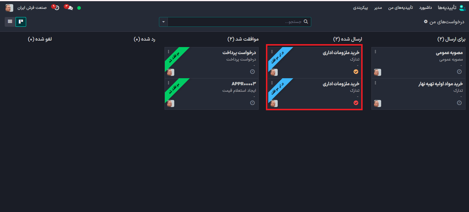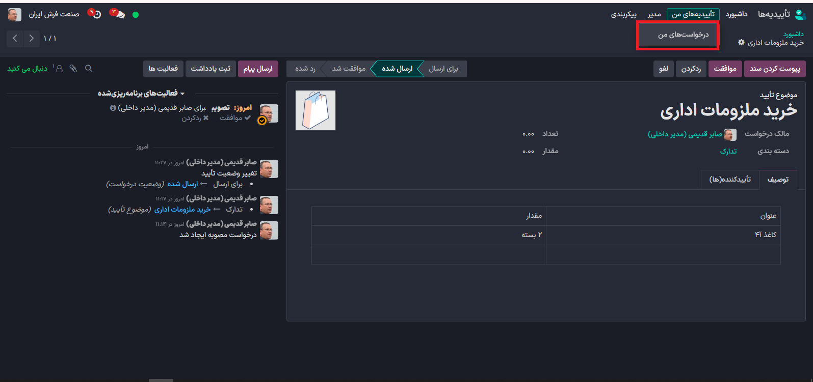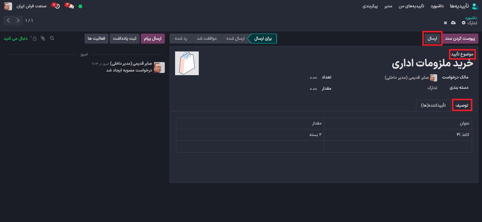 به این ترتیب شما توانسته اید یک درخواست تدارکات ایجاد کنید.