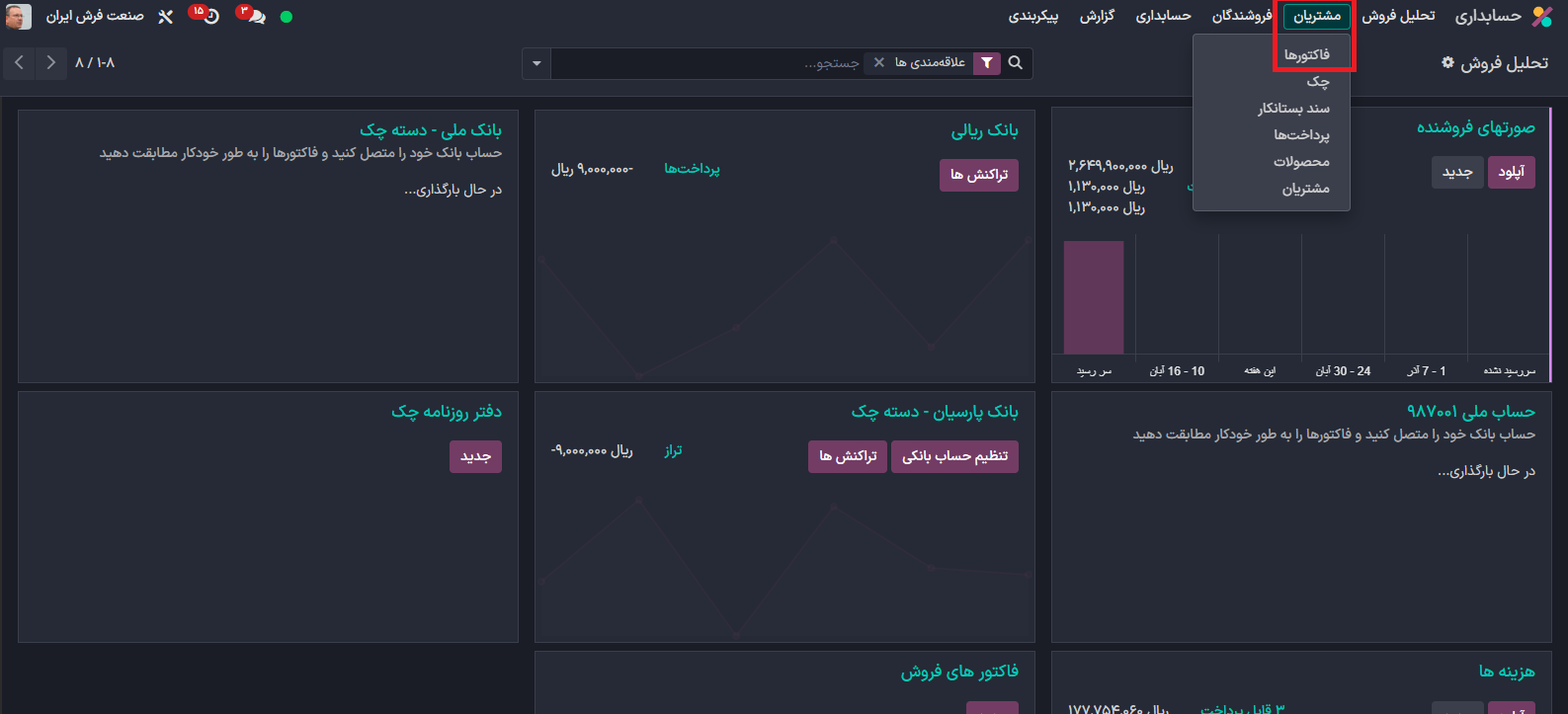 از منو مشتریان فاکتور ها را انتخاب کنید.