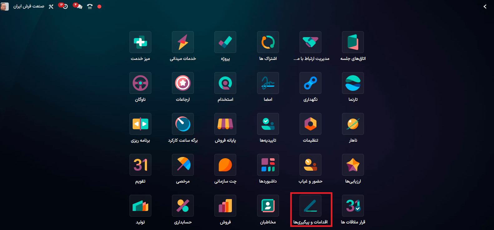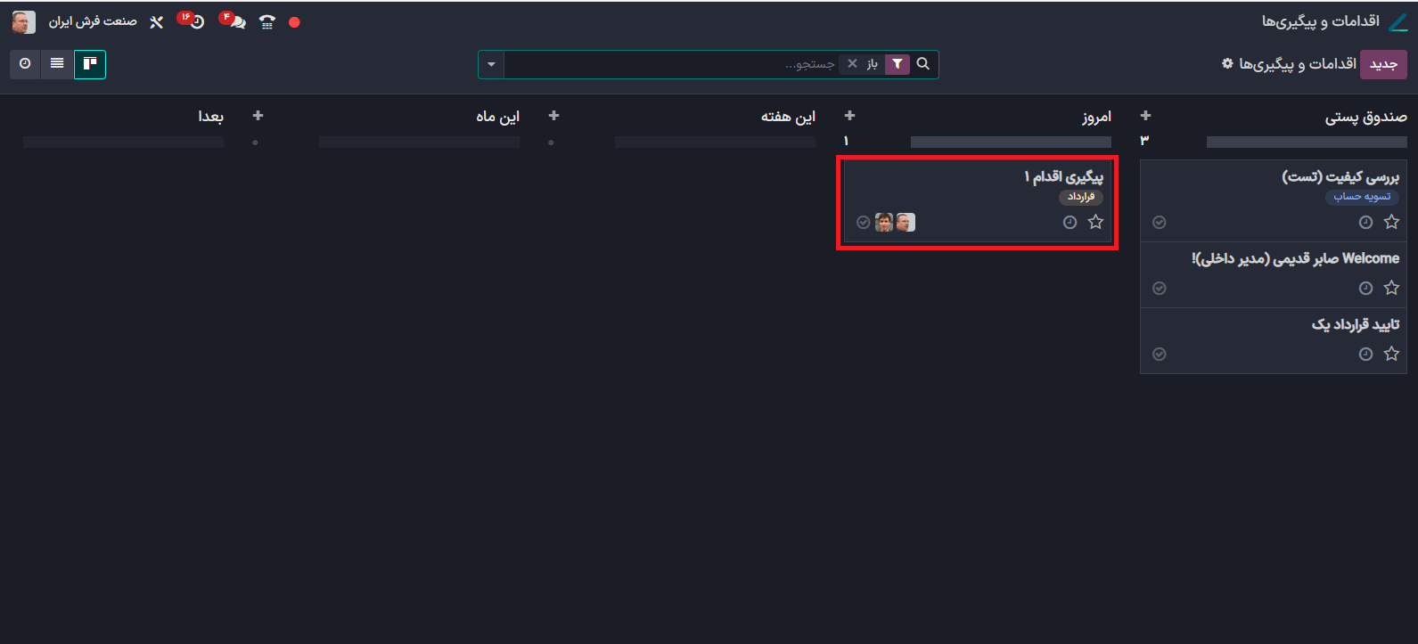 وارد ماژول اقدامات و پیگیری ها شوید.