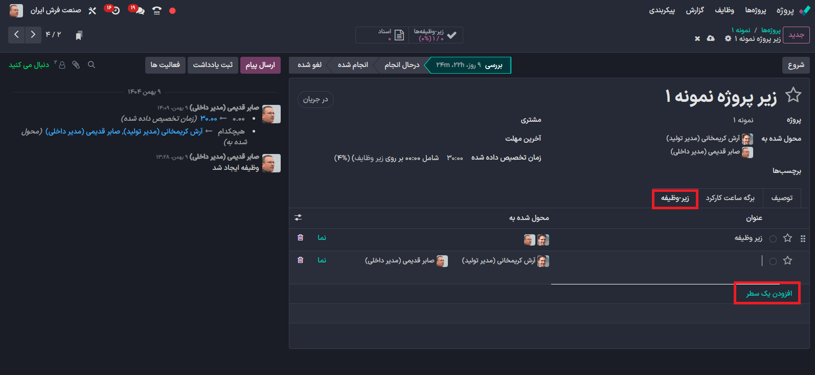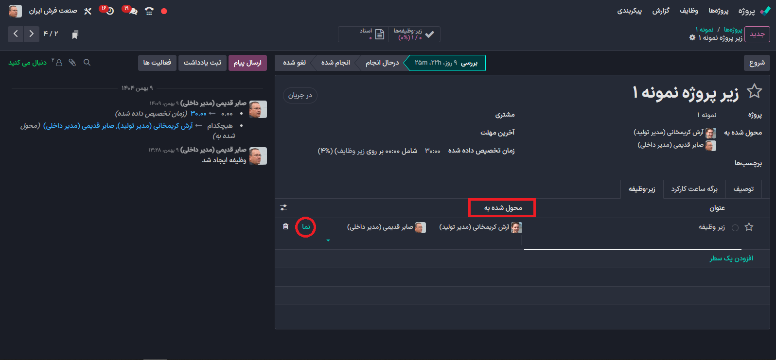 در صورت نیاز، با کلیک روی گزینه(نما)می توانید وارد صفحه زیر وظیفه شده و اطلاعات کامل آن را مشاهده و مدیریت کنید.