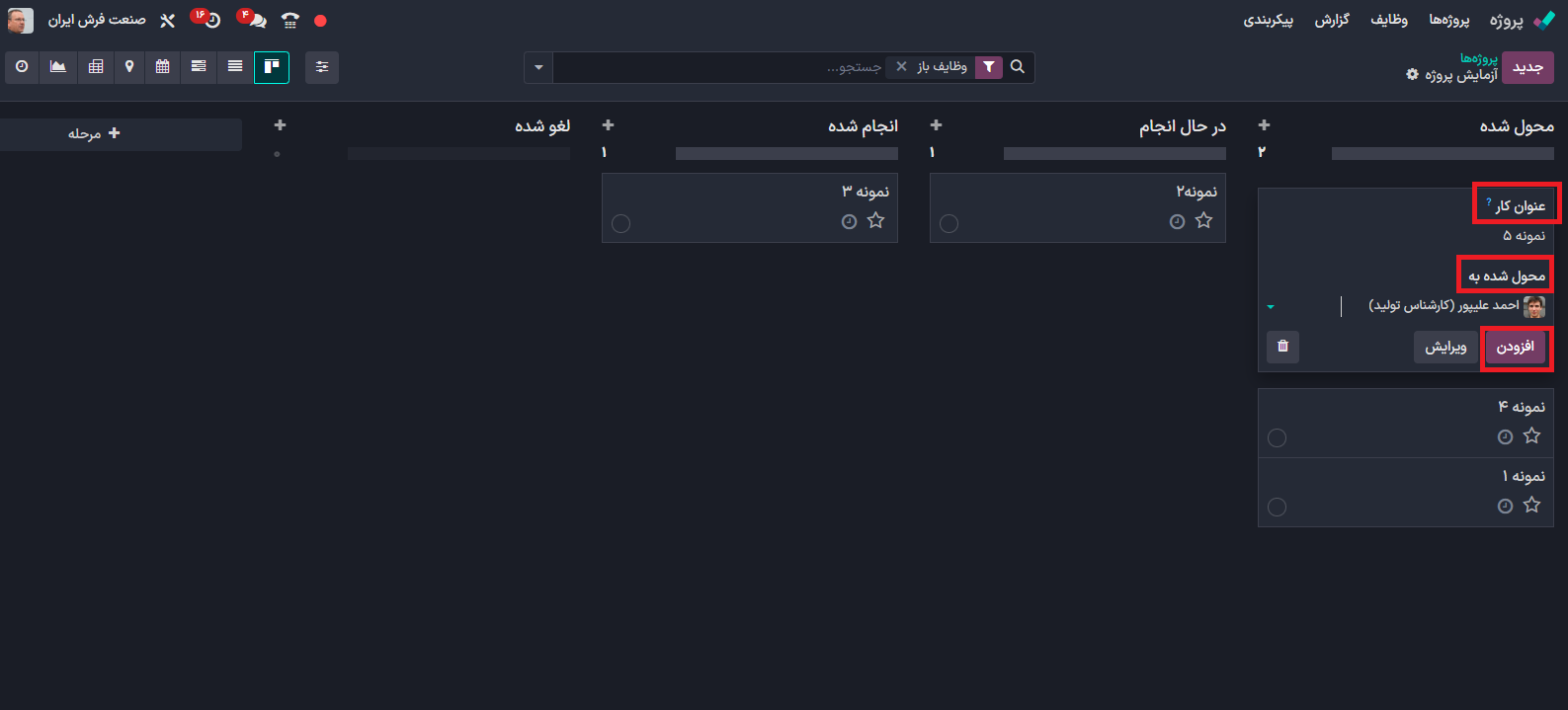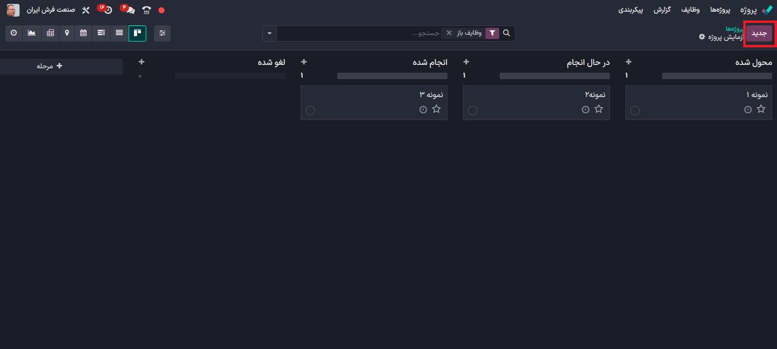 ایجاد و مدیریت یک وظیفه جدید در ماژول پروژه چگونه است؟