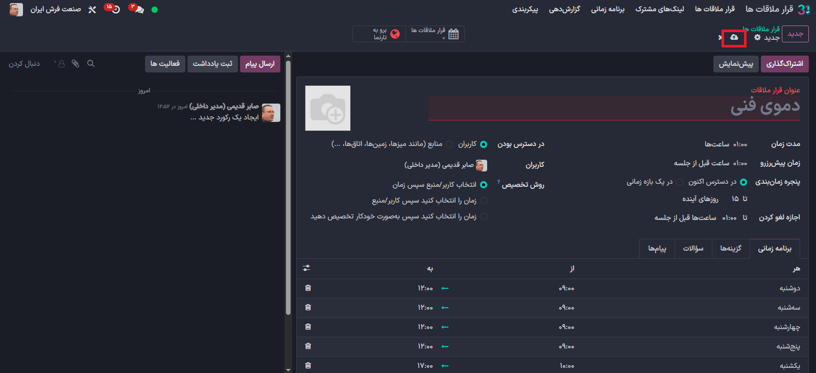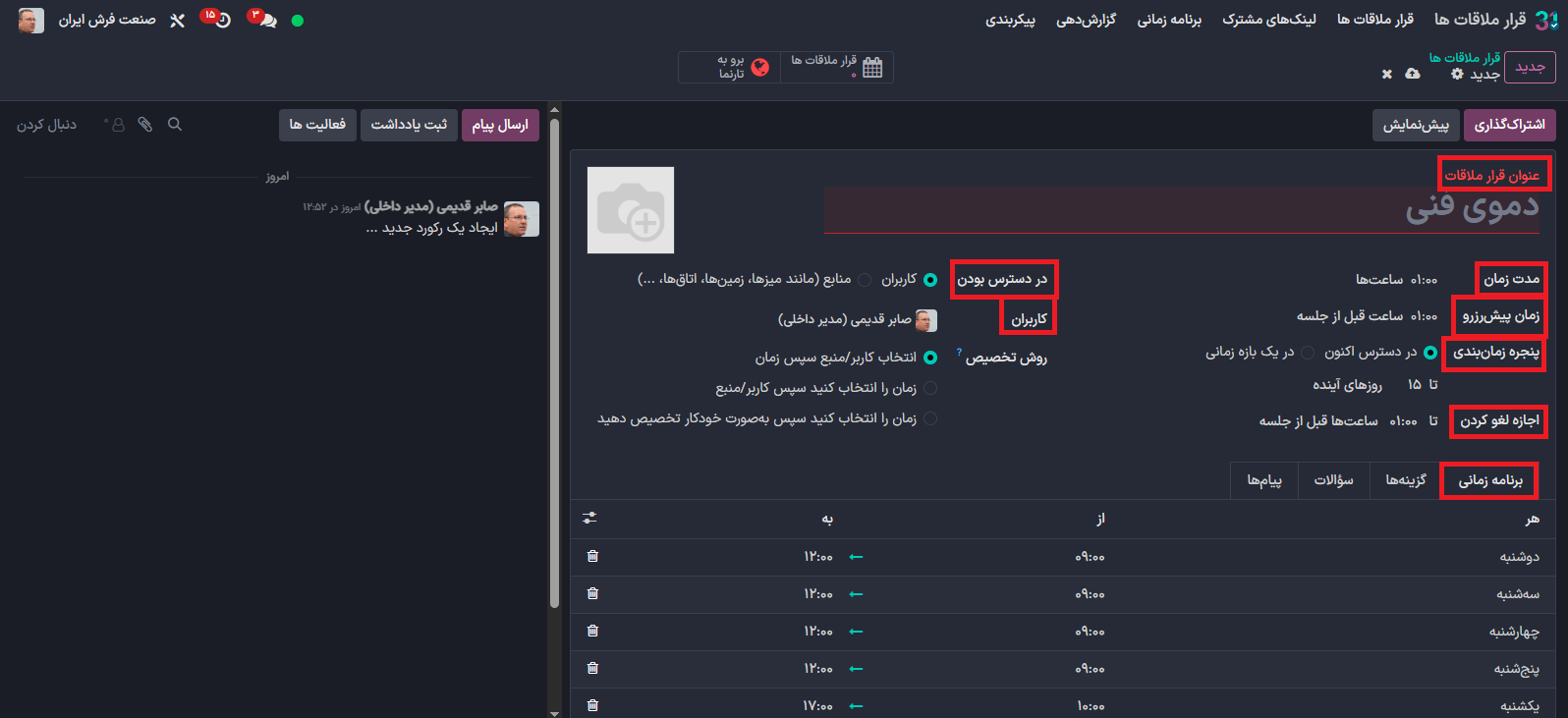 در فرم باز شده،اطلاعات اصلی قرارملاقات را وارد کنید. مثلا: