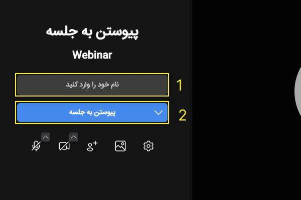 1. نام خود را در اینجا وارد کنید. افراد حاضر در وبینار شما را با این نام می بینند.
