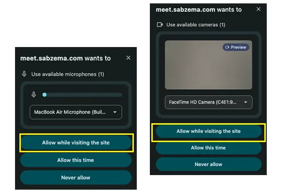 روی گزینه اجازه ( Allow while visiting the site) کلیک کنید.