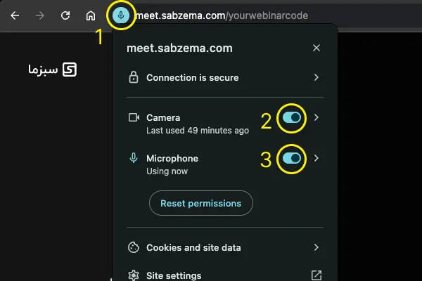 1. روی آیکون کنار ادرس سایت در بالا و سمت راست مرورگر کلیک کنید، سپس می توانید وضعیت دسترسی ها را مشاهده کنید.